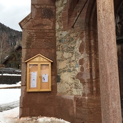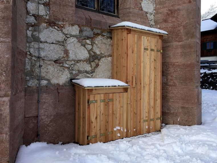 Der alte rostige Schaukasten am Turm wurde gegen einen schönen Lärchenholzkasten ersetzt und der seeseitige Elektro-Zuleitungskasten samt Wasseranschluss mit einem Lärchenholzkobel verkleidet.